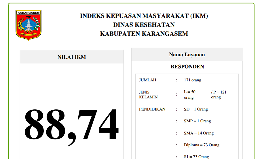 Indeks Kepuasan Masyarakat (IKM) Dinas Kesehatan Kab. Karangasem : : 01 Juli 2025 s/d 01 Desember 2025
