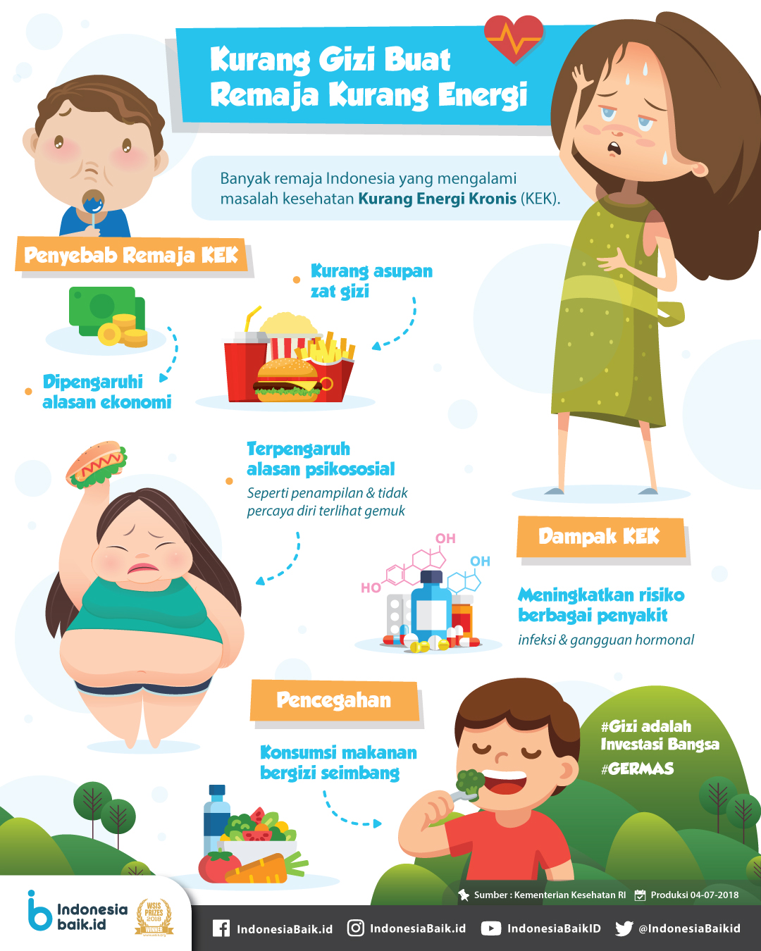 Rupanya, kondisi remaja KEK meningkatkan risiko berbagai penyakit infeksi dan gangguan hormonal yang berdampak buruk di kesehatan. Padahal KEK sejatinya dapat dicegah dengan mengonsumsi makanan dengan gizi seimbang.