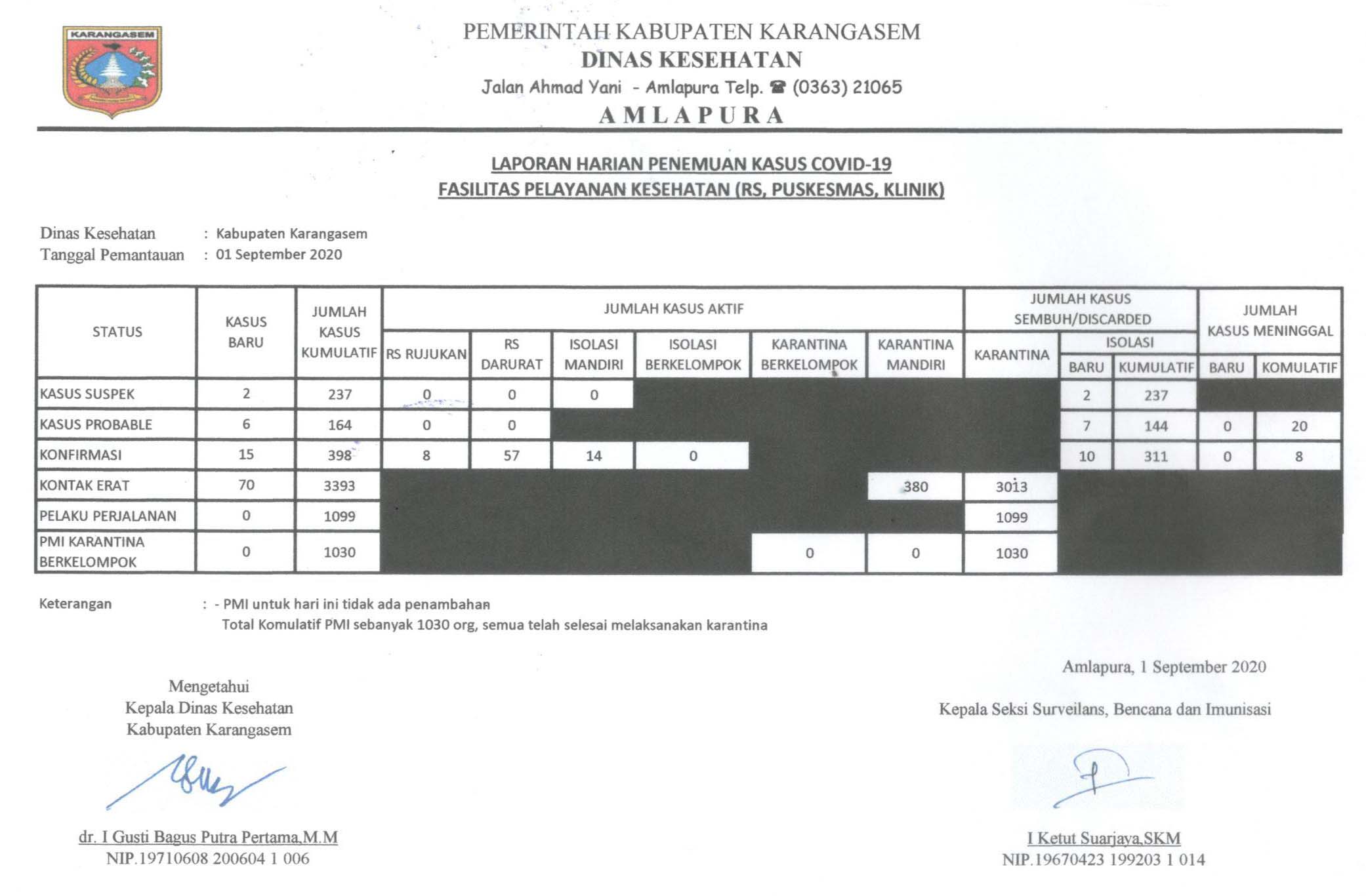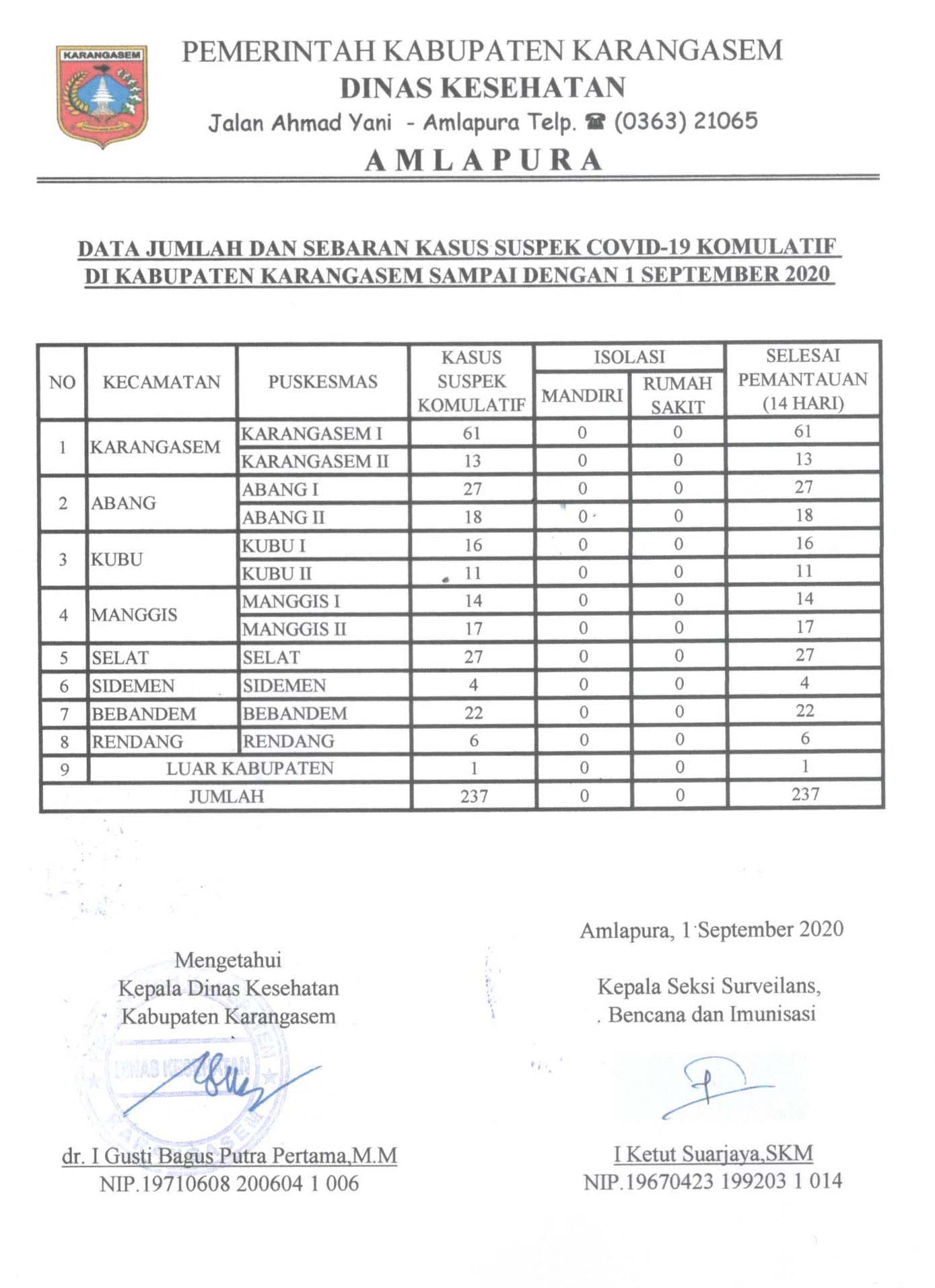 DATA JUMLAH DAN SEBARAN KASUS SUSPEK COVID-19 KOMULATIF DI KABUPATEN KARANGASEM