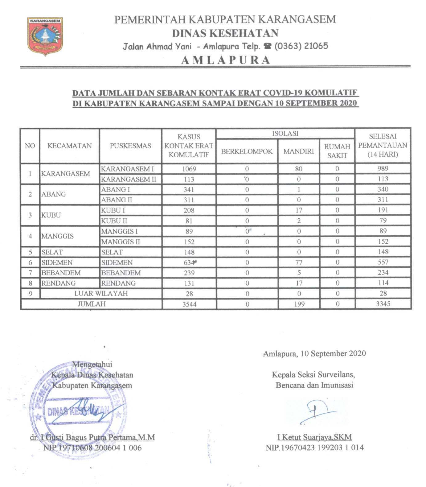 DATA JUMLAH DAN SEBARAN KONTAK ERAT COVID19 KOMULATIF DI KABUPATEN KARANGASEM