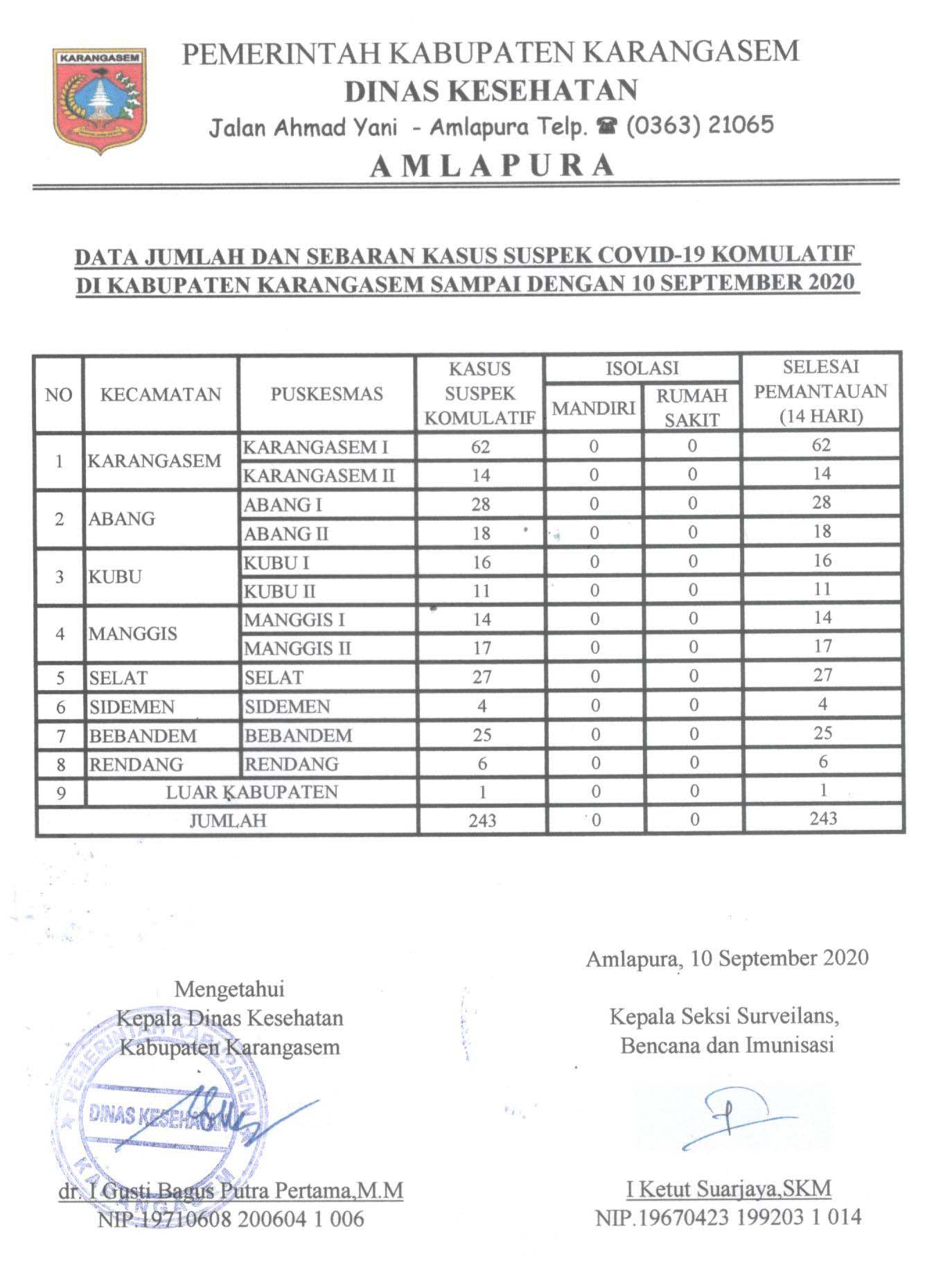 DATA JUMLAH DAN SEBARAN KASUS SUSPEK COVID-19 KOMULATIF DI KABUPATEN KARANGASEM