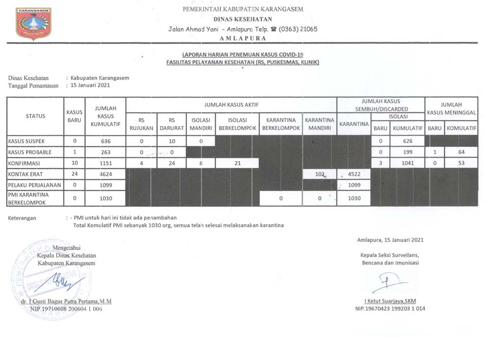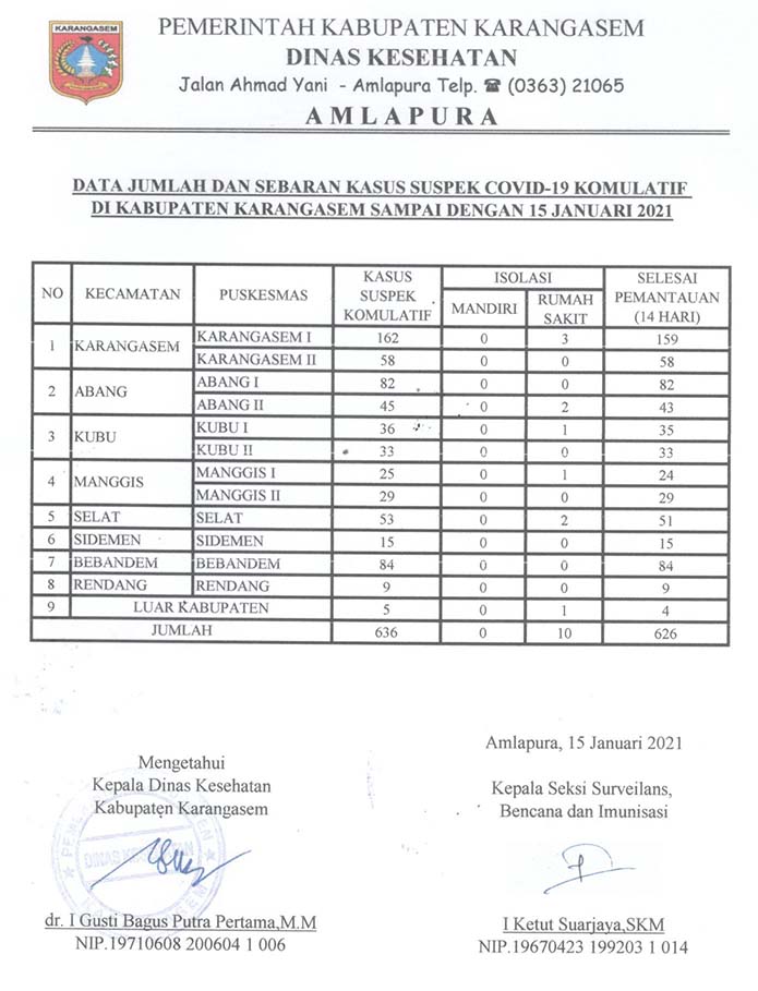 DATA JUMLAH DAN SEBARAN KASUS SUSPEK COVID-19 KOMULATIF DI KABUPATEN KARANGASEM