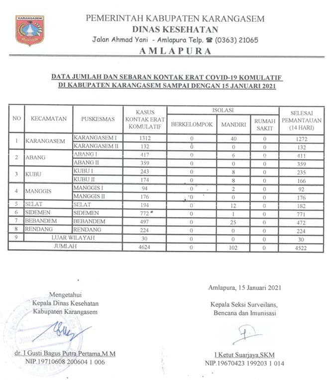 DATA JUMLAH DAN SEBARAN KONTAK ERAT COVID19 KOMULATIF DI KABUPATEN KARANGASEM