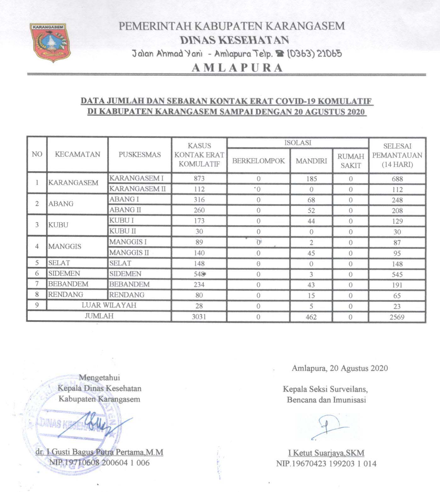 DATA JUMLAH DAN SEBARAN KONTAK ERAT COVID19 KOMULATIF DI KABUPATEN KARANGASEM
