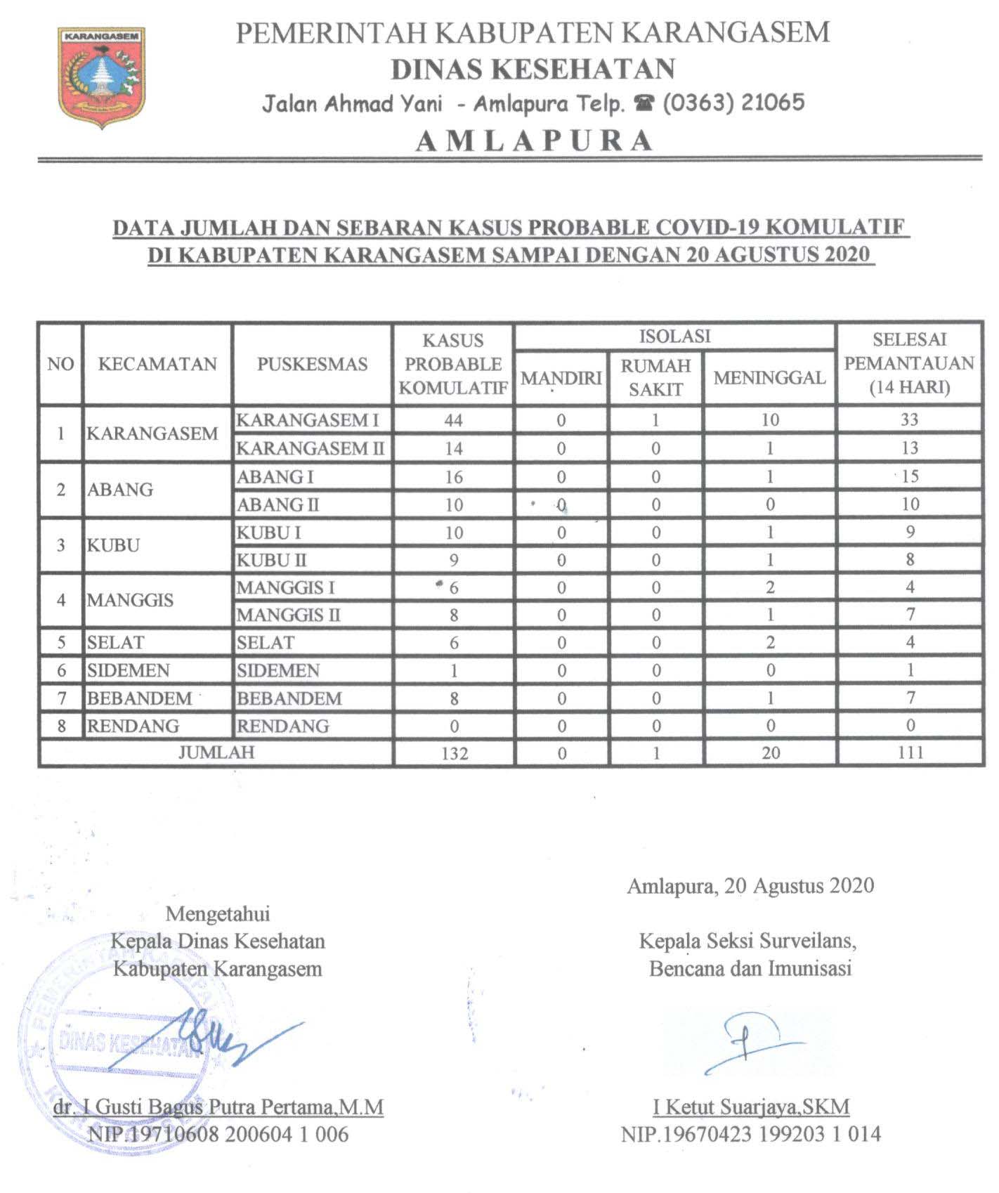 DATA JUMLAH DAN SEBARAN KASUS PROBABLE COVID19 KOMULATIF DI KABUPATEN KARANGASEM