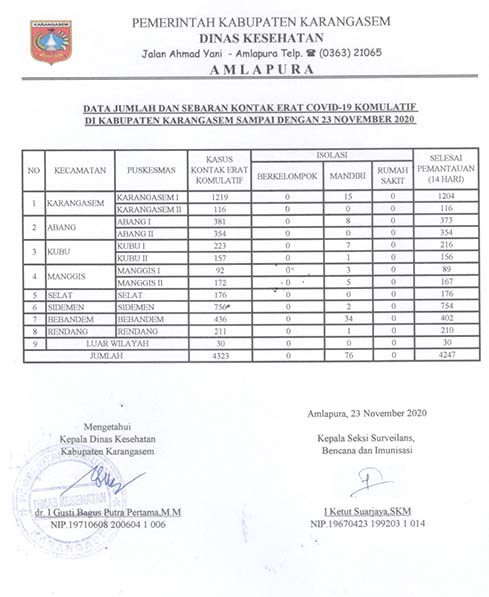 DATA JUMLAH DAN SEBARAN KONTAK ERAT COVID19 KOMULATIF DI KABUPATEN KARANGASEM