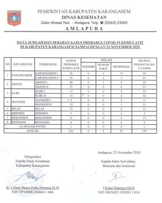 DATA JUMLAH DAN SEBARAN KASUS PROBABLE COVID19 KOMULATIF DI KABUPATEN KARANGASEM
