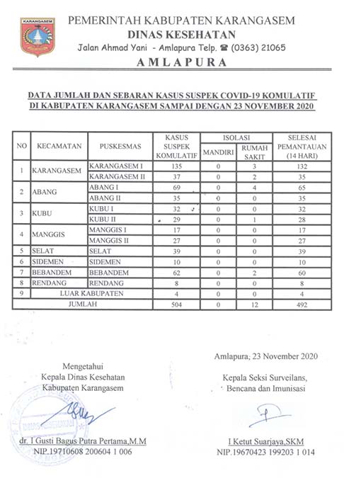 DATA JUMLAH DAN SEBARAN KASUS SUSPEK COVID-19 KOMULATIF DI KABUPATEN KARANGASEM