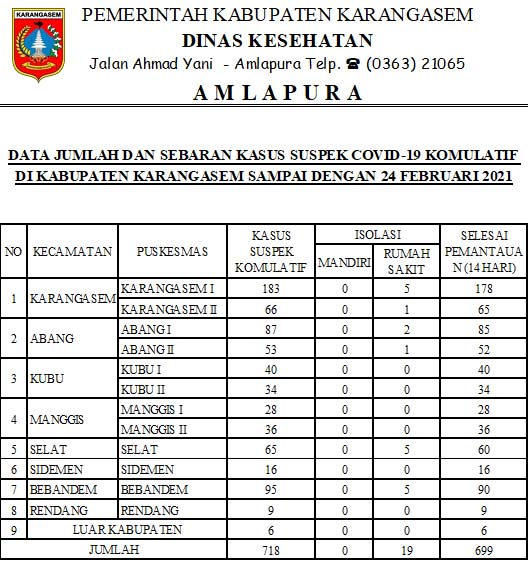 DATA JUMLAH DAN SEBARAN KASUS SUSPEK COVID-19 KOMULATIF DI KABUPATEN KARANGASEM