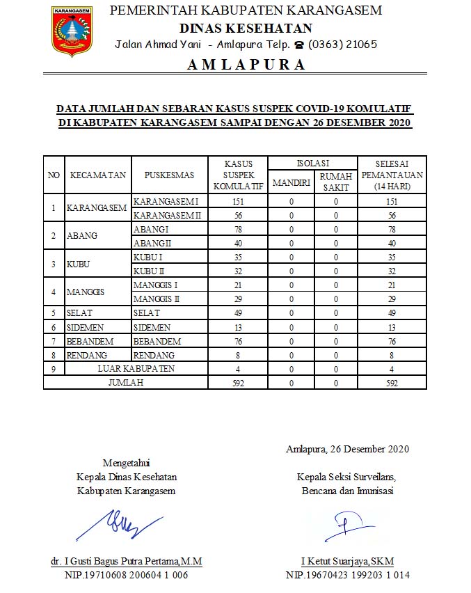 DATA JUMLAH DAN SEBARAN KASUS SUSPEK COVID-19 KOMULATIF DI KABUPATEN KARANGASEM