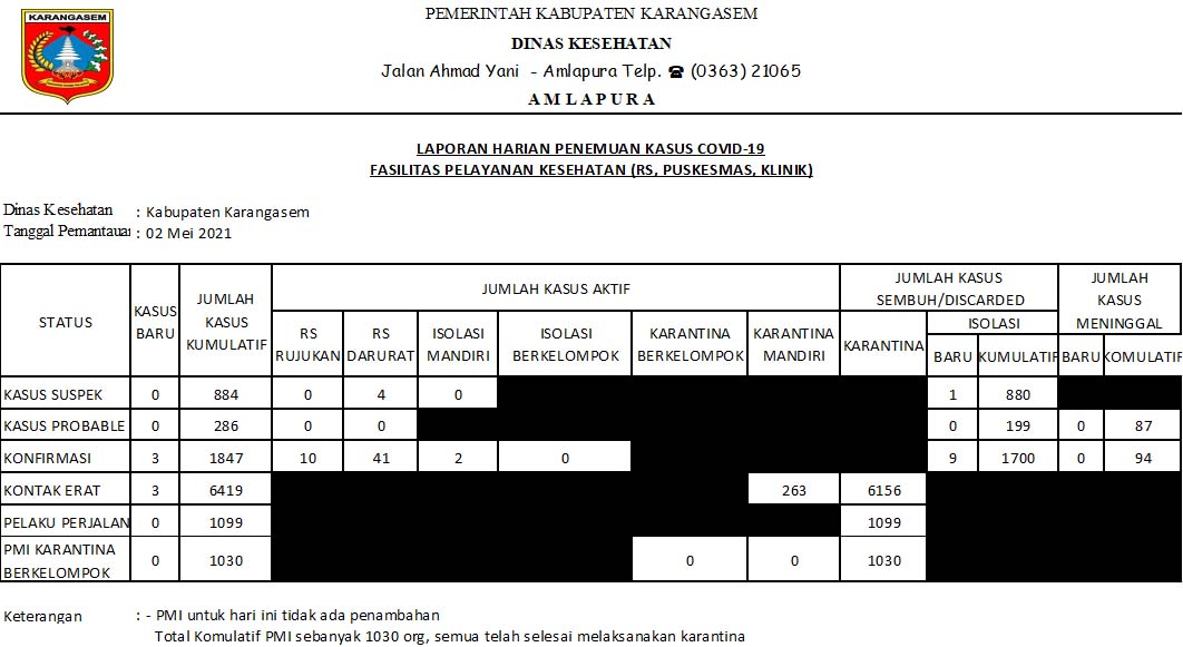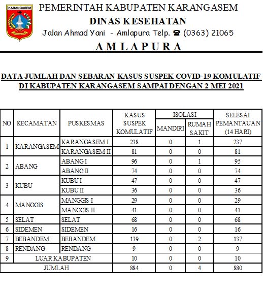 DATA JUMLAH DAN SEBARAN KASUS SUSPEK COVID-19 KOMULATIF DI KABUPATEN KARANGASEM