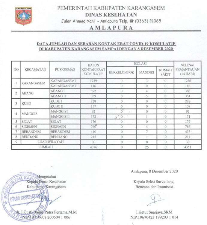 DATA JUMLAH DAN SEBARAN KONTAK ERAT COVID19 KOMULATIF DI KABUPATEN KARANGASEM