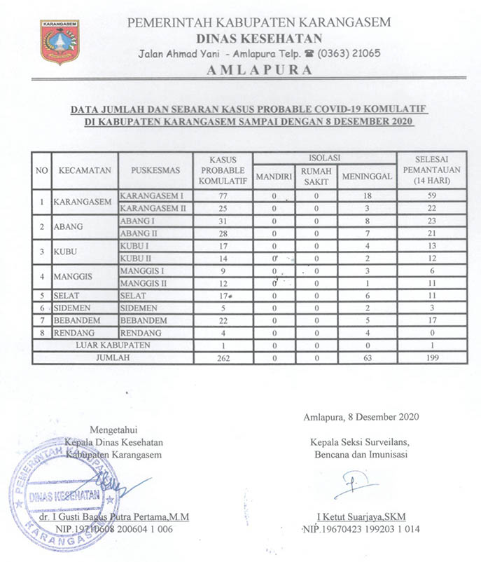 DATA JUMLAH DAN SEBARAN KASUS PROBABLE COVID19 KOMULATIF DI KABUPATEN KARANGASEM