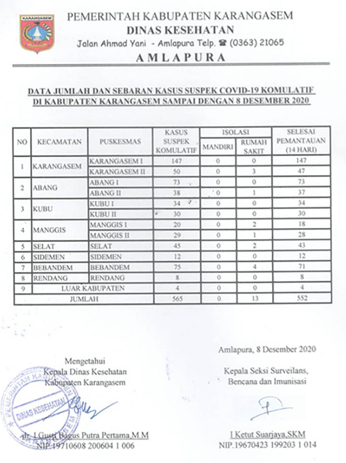 DATA JUMLAH DAN SEBARAN KASUS SUSPEK COVID-19 KOMULATIF DI KABUPATEN KARANGASEM